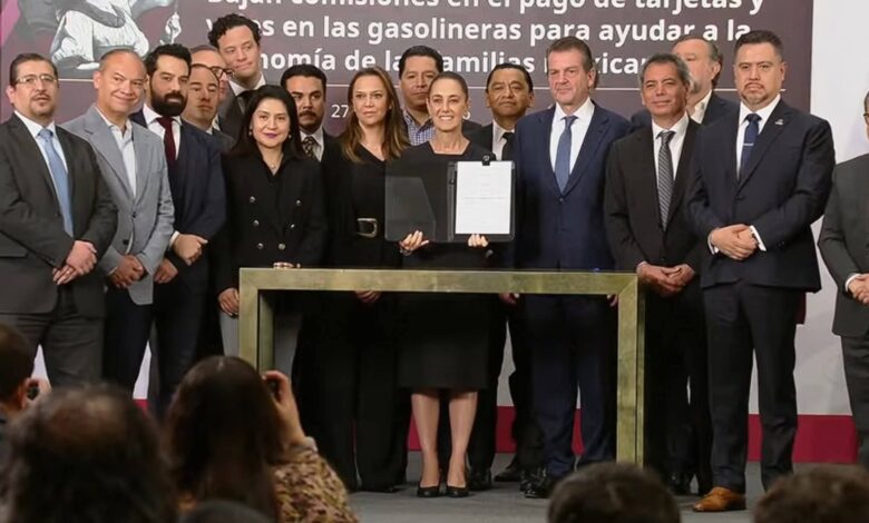 La presidenta de MΓ©xico, Claudia Sheinbaum anunciΓ³ que bajarΓ‘n las comisiones en el pago de gasolinas para quienes paguen en efectivo, tarjeta de crΓ©dito o dΓ©bito.