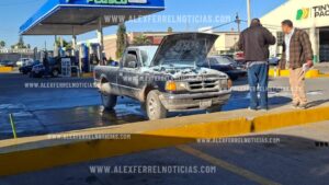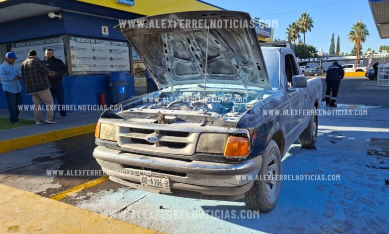 Delicias.– Una camioneta tipo pickup estuvo a punto de provocar un siniestro mayor luego de incendiarse mientras cargaba combustible en una estación ubicada sobre la avenida Río Conchos y 7a del sector Oriente.