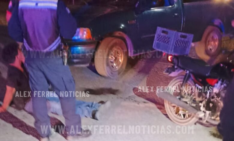 CHOQUE ENTRE PICKUP Y MOTOCICLETA DEJA A MENOR HERIDO CON POSIBLE FRACTURA EN MEOQUI