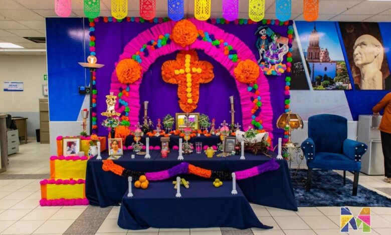 Además, el funcionario invitó a la ciudadanía a acudir a la Presidencia Municipal para apreciar el altar y tomarse una fotografía en el espacio decorado especialmente para la ocasión: “Preparamos un área para fotografías en la entrada principal, con un catrín y una catrina para que las familias vengan con sus niños, sus parejas o sus papás y puedan llevarse la foto del recuerdo”, concluyó.