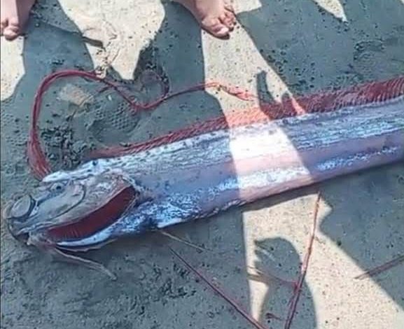 Este pez habita en aguas profundas y es vinculado popularmente con malos presagios de desastres naturales, generó asombro entre los que lo vieron.