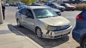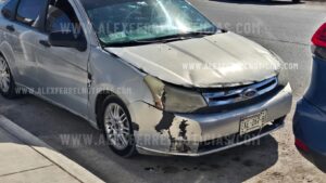 Delicias.- Una conductora protagonizó esta mañana un choque con otro vehículo donde viajaba una pareja, dejando solo daños materiales.