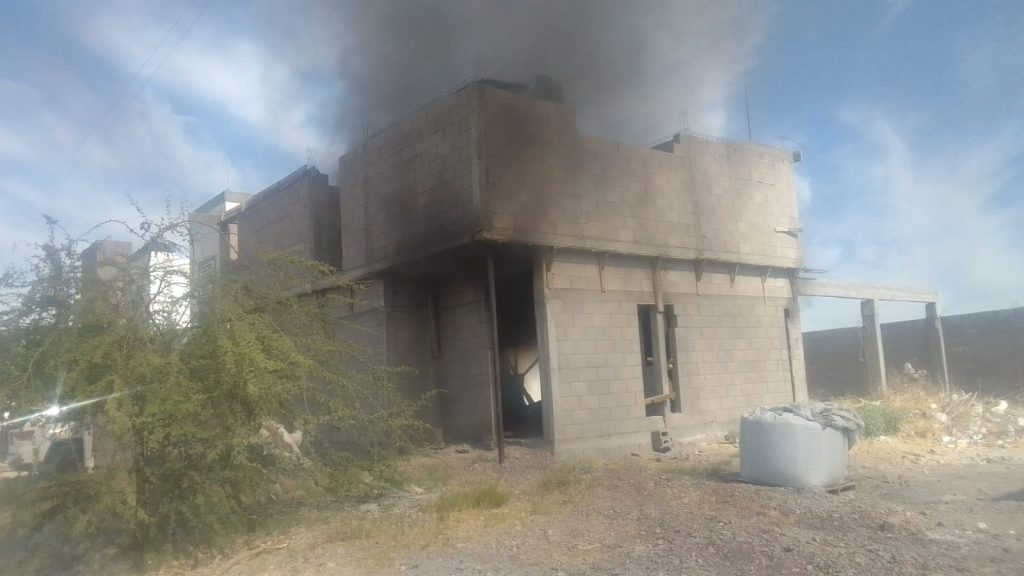 Delicias.- Una densa columna de humo negro proveniente de un inmueble en construcción generó una intensa movilización de corporaciones hasta el fraccionamiento Quintas Mariana.