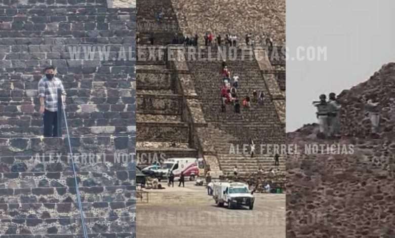 Ante la emergencia, autoridades cerraron la zona arqueológica de Teotihuacán. Elementos de la Guardia Nacional (GN), y la policía estatal ya se encuentran en lo alto de la Pirámide de la Luna atendiendo la emergencia.